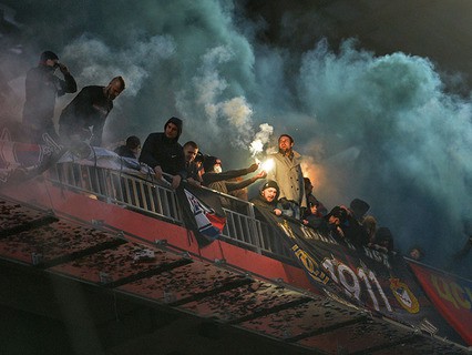 Клубы дыма, взрывы петард, сломанные сиденья – все это происходило уже на 15-й минуте матча, отметил "ТВ Центр". Противостояние между болельщиками ЦСКА и "Зенита" переросло в потасовку.