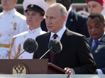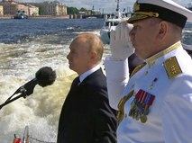 Путин на катере обошёл парадную линию боевых кораблей на Неве